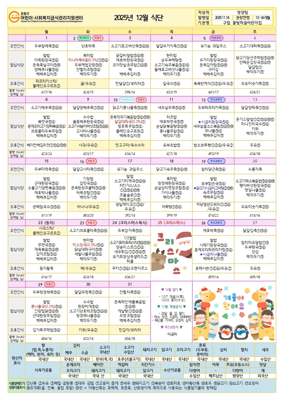 * 급식담당인력수의 취사부는 취사부와 조리사 인력을 합산할 수 있습니다.