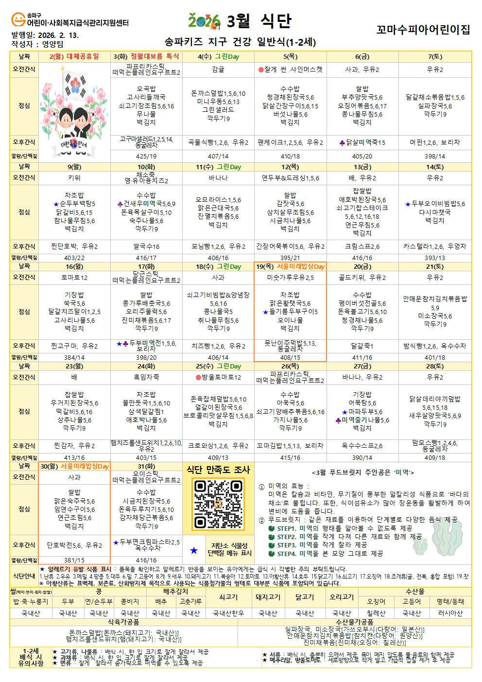| 전체아동수 | 급식아동수 | 영양(교)사 | 취사인력 | ||||