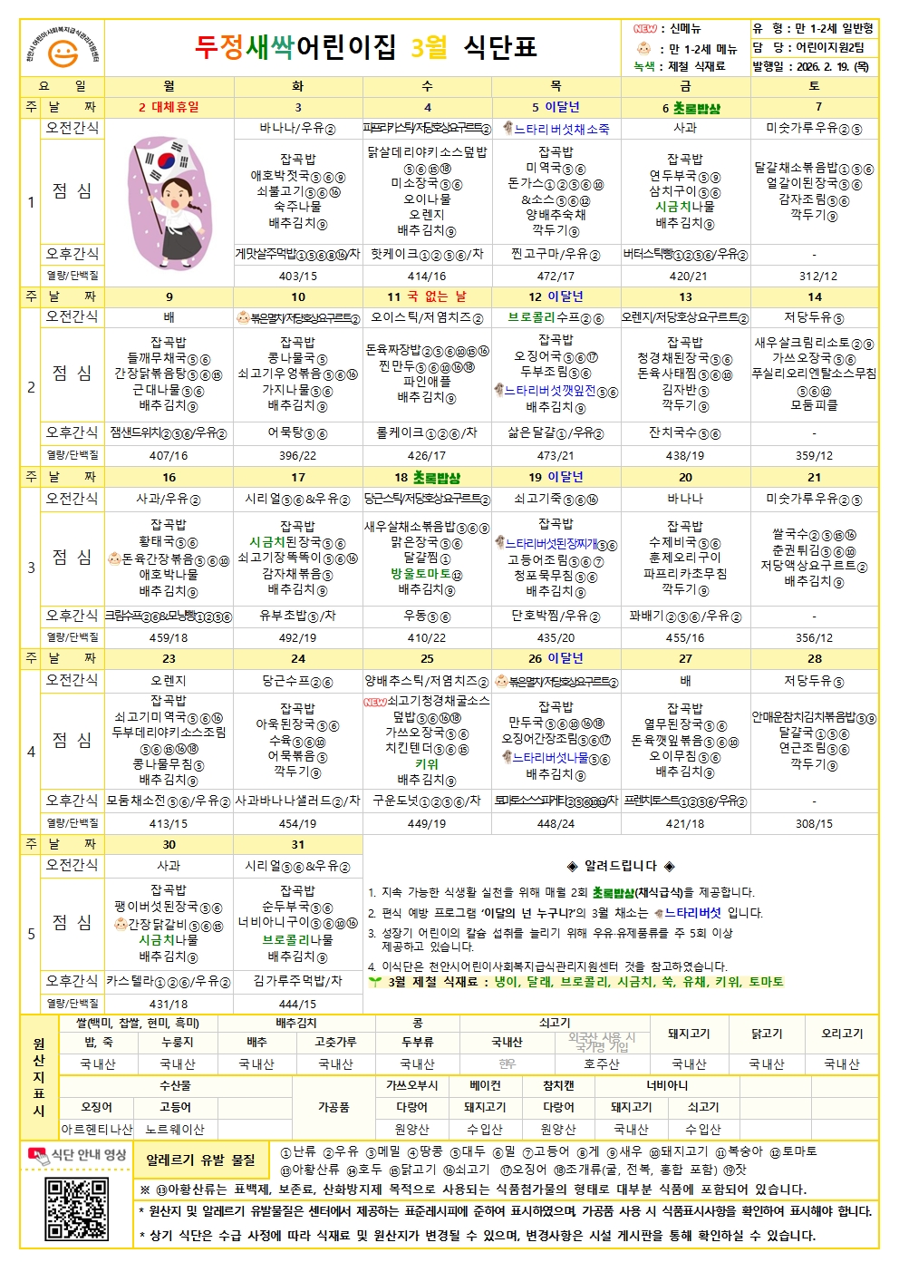 | 전체아동수 | 급식아동수 | 영양(교)사 | 취사인력 | ||||