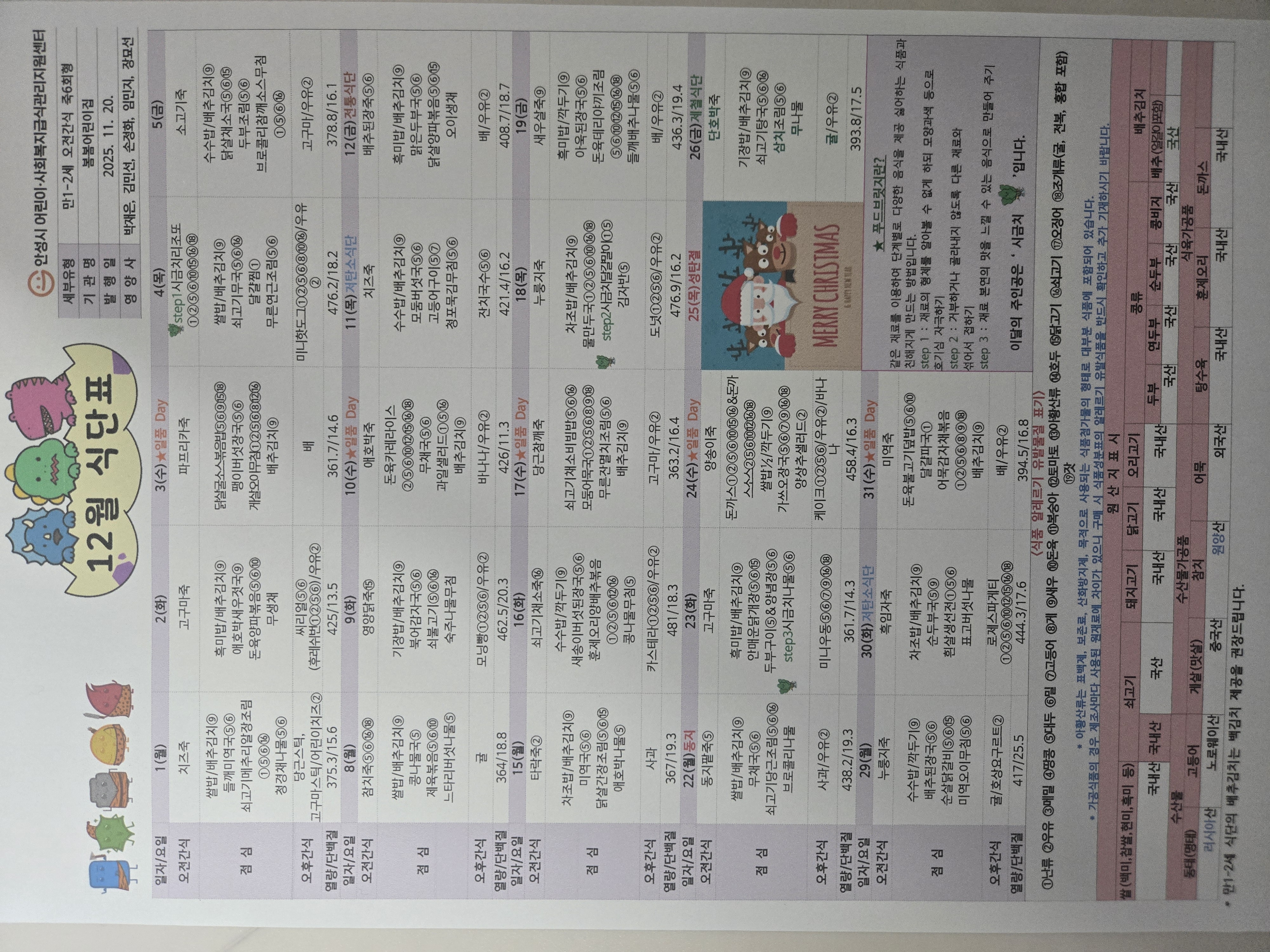 * 급식담당인력수의 취사부는 취사부와 조리사 인력을 합산할 수 있습니다.