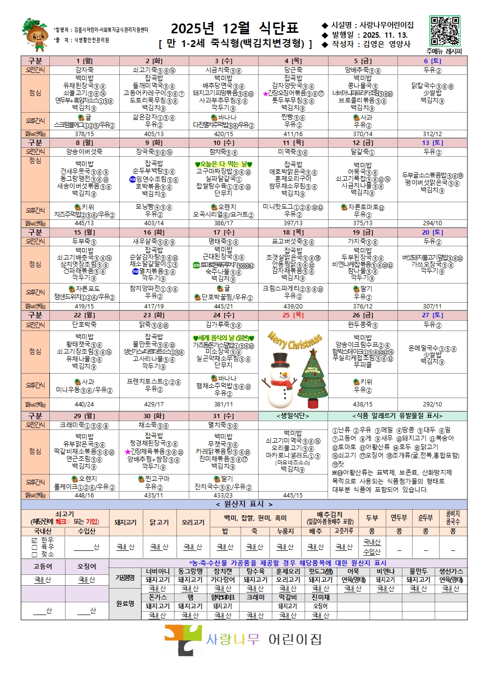 * 급식담당인력수의 취사부는 취사부와 조리사 인력을 합산할 수 있습니다.