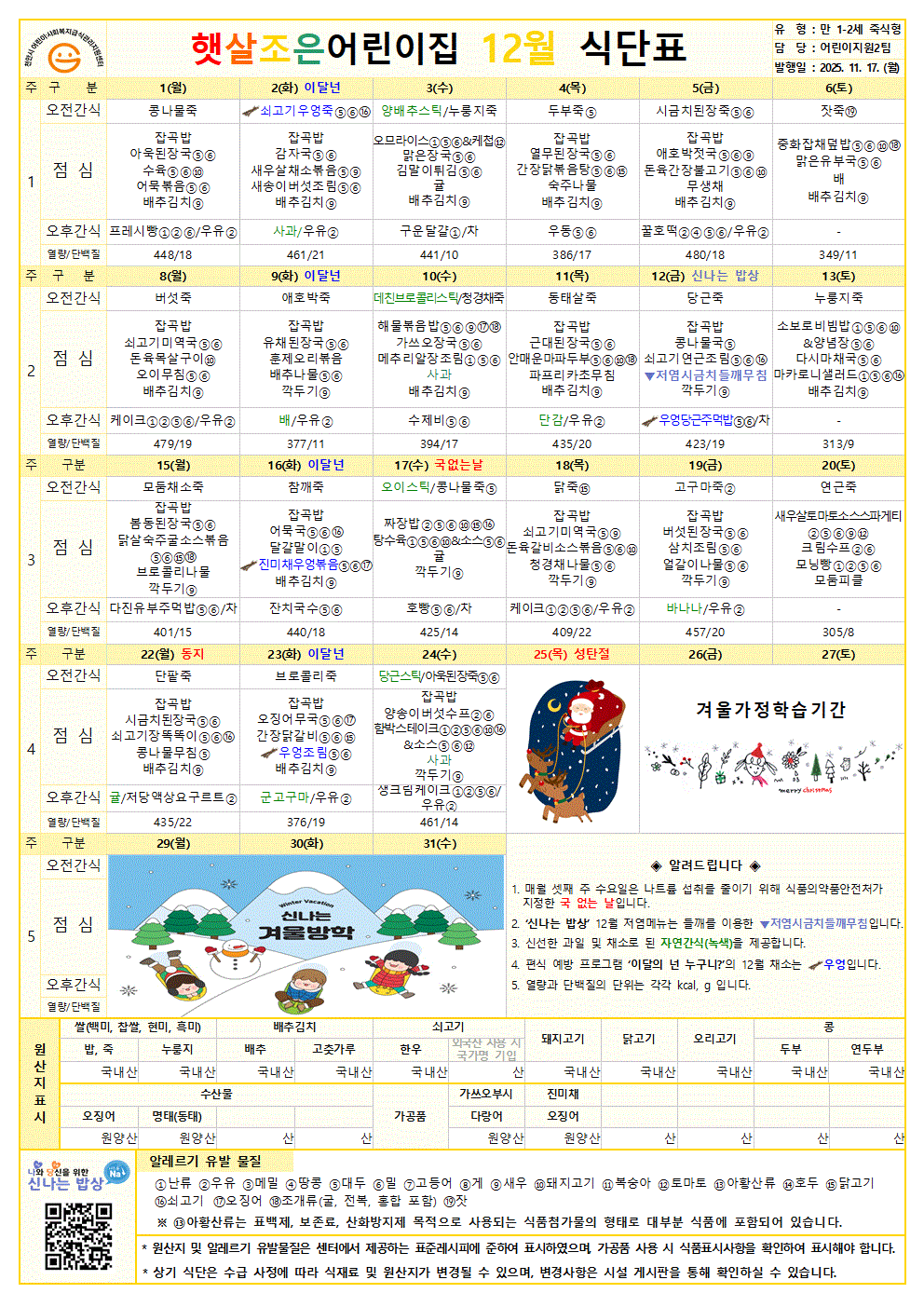 | 전체아동수 | 급식아동수 | 영양(교)사 | 취사인력 | ||||