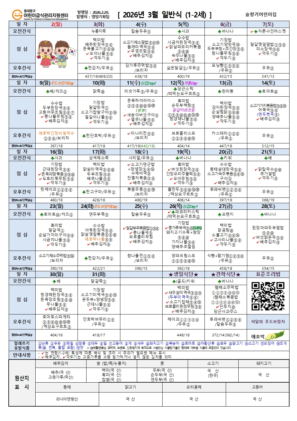 | 전체아동수 | 급식아동수 | 영양(교)사 | 취사인력 | ||||