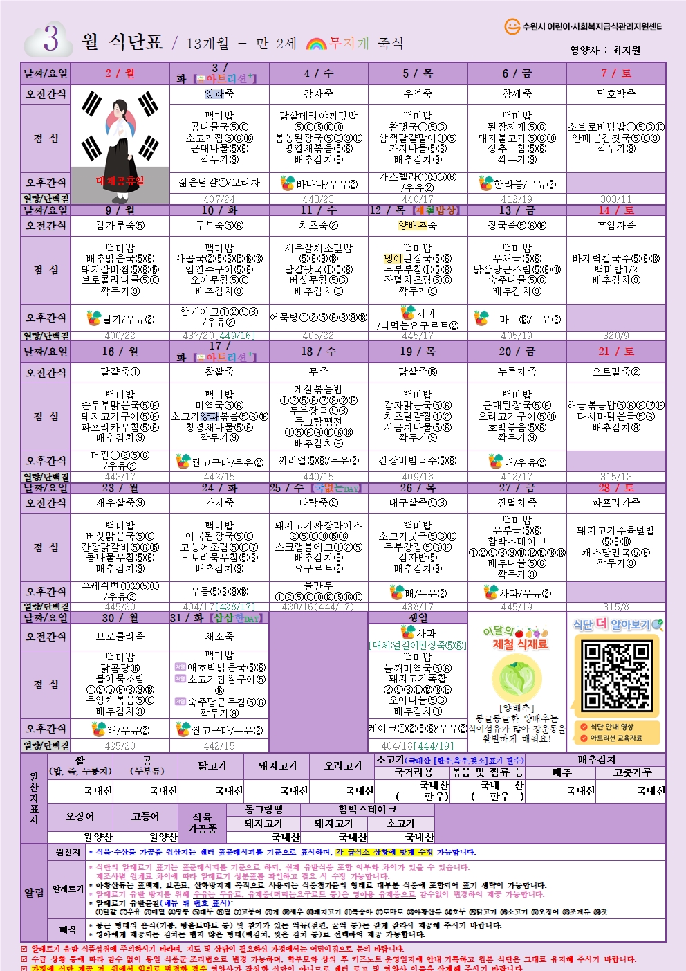 * 급식담당인력수의 취사부는 취사부와 조리사 인력을 합산할 수 있습니다.