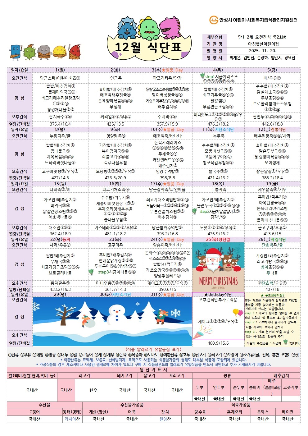 | 전체아동수 | 급식아동수 | 영양(교)사 | 취사인력 | ||||