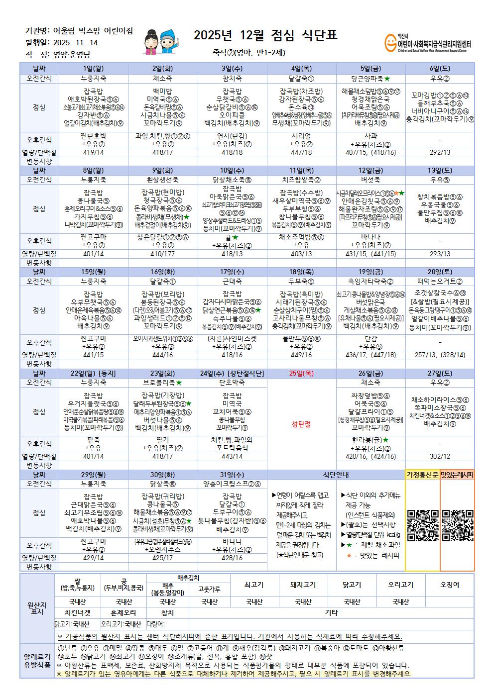 | 전체아동수 | 급식아동수 | 영양(교)사 | 취사인력 | ||||