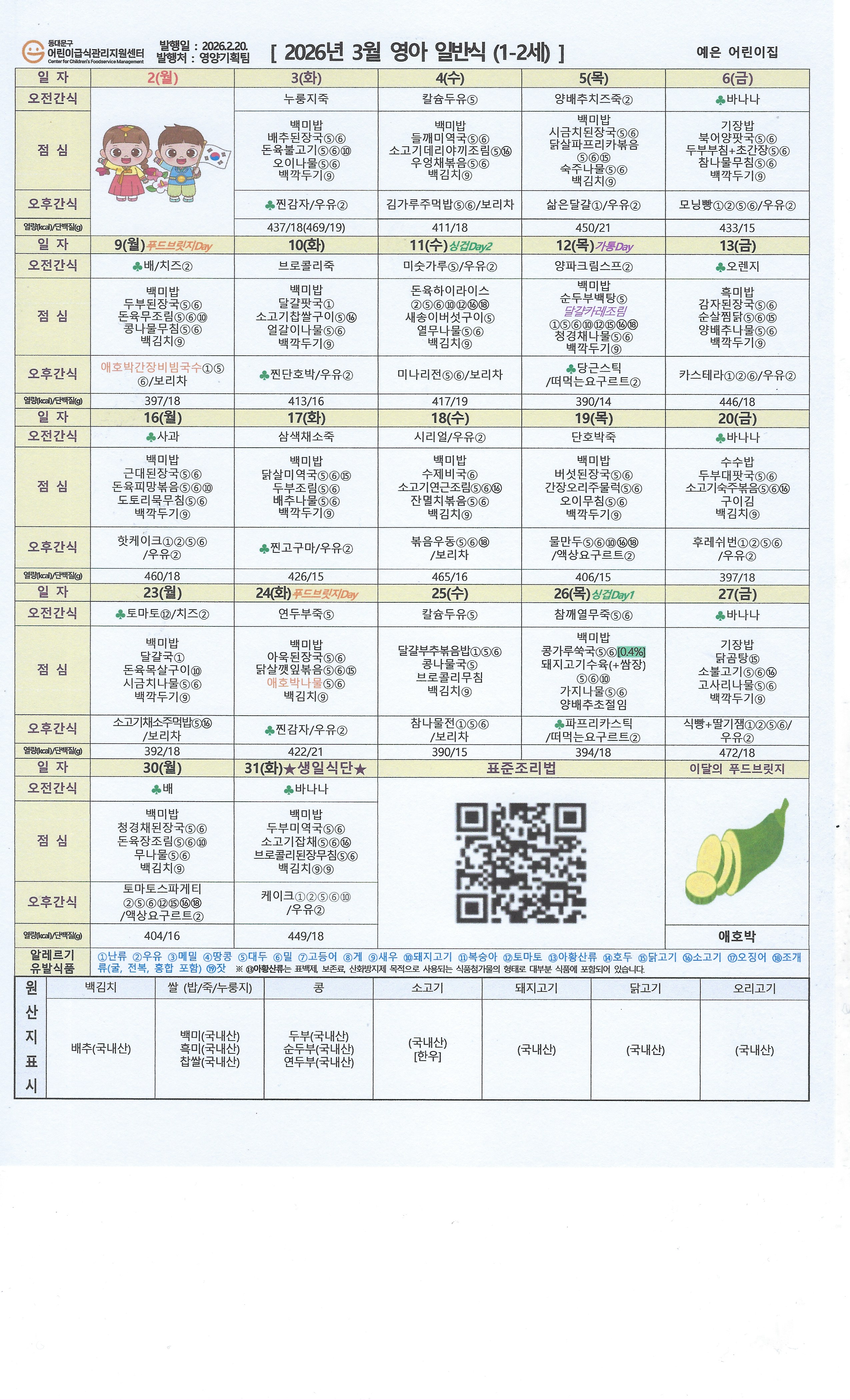 | 전체아동수 | 급식아동수 | 영양(교)사 | 취사인력 | ||||