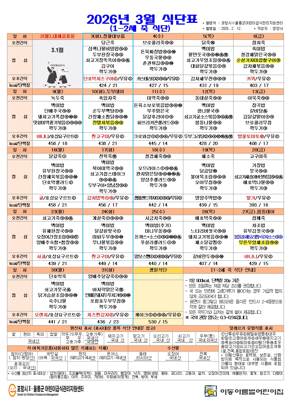 | 전체아동수 | 급식아동수 | 영양(교)사 | 취사인력 | ||||