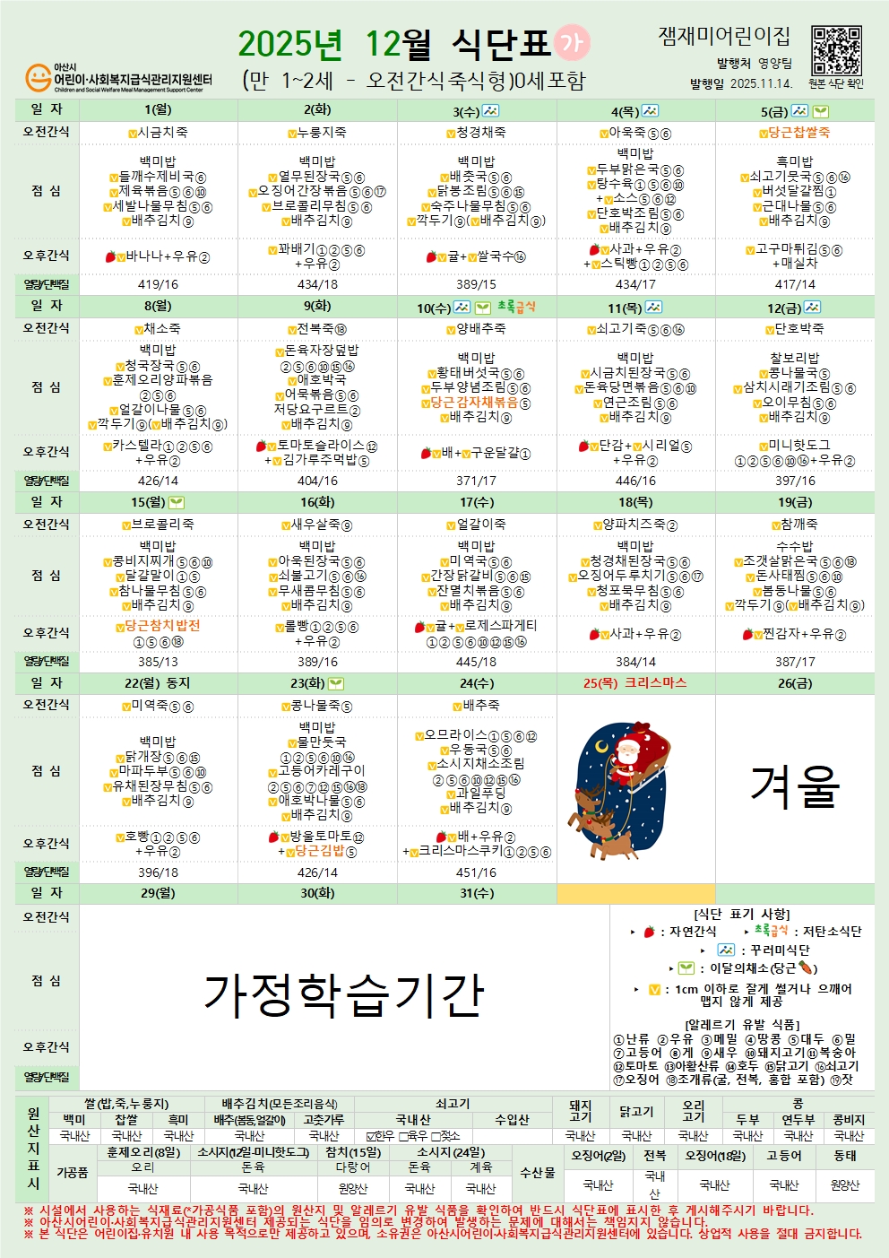 | 전체아동수 | 급식아동수 | 영양(교)사 | 취사인력 | ||||