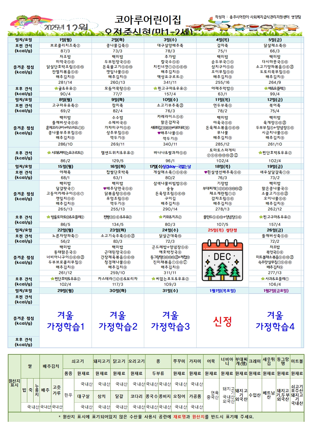 | 전체아동수 | 급식아동수 | 영양(교)사 | 취사인력 | ||||