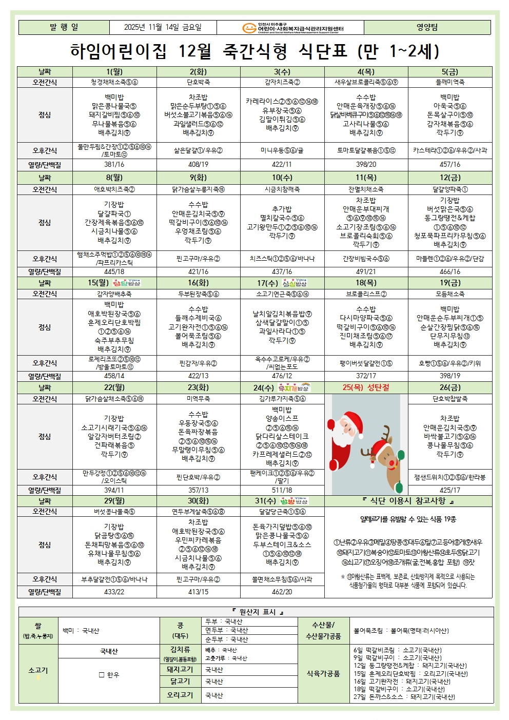 * 급식담당인력수의 취사부는 취사부와 조리사 인력을 합산할 수 있습니다.