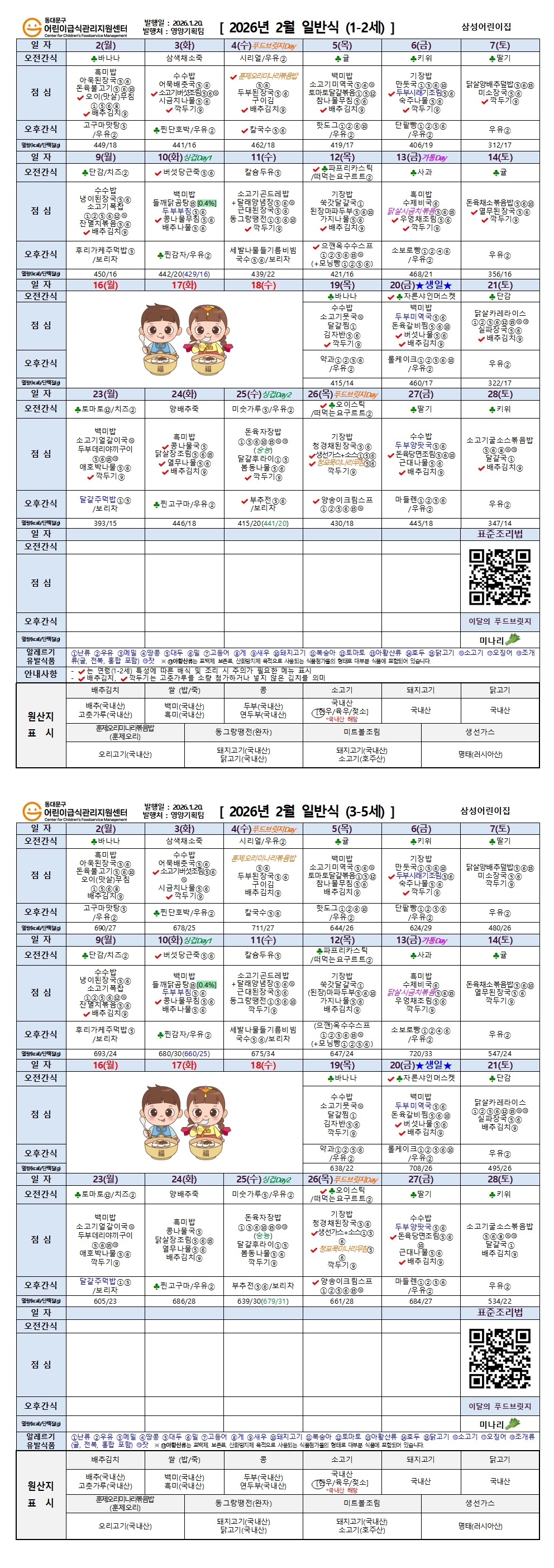 | 전체아동수 | 급식아동수 | 영양(교)사 | 취사인력 | ||||