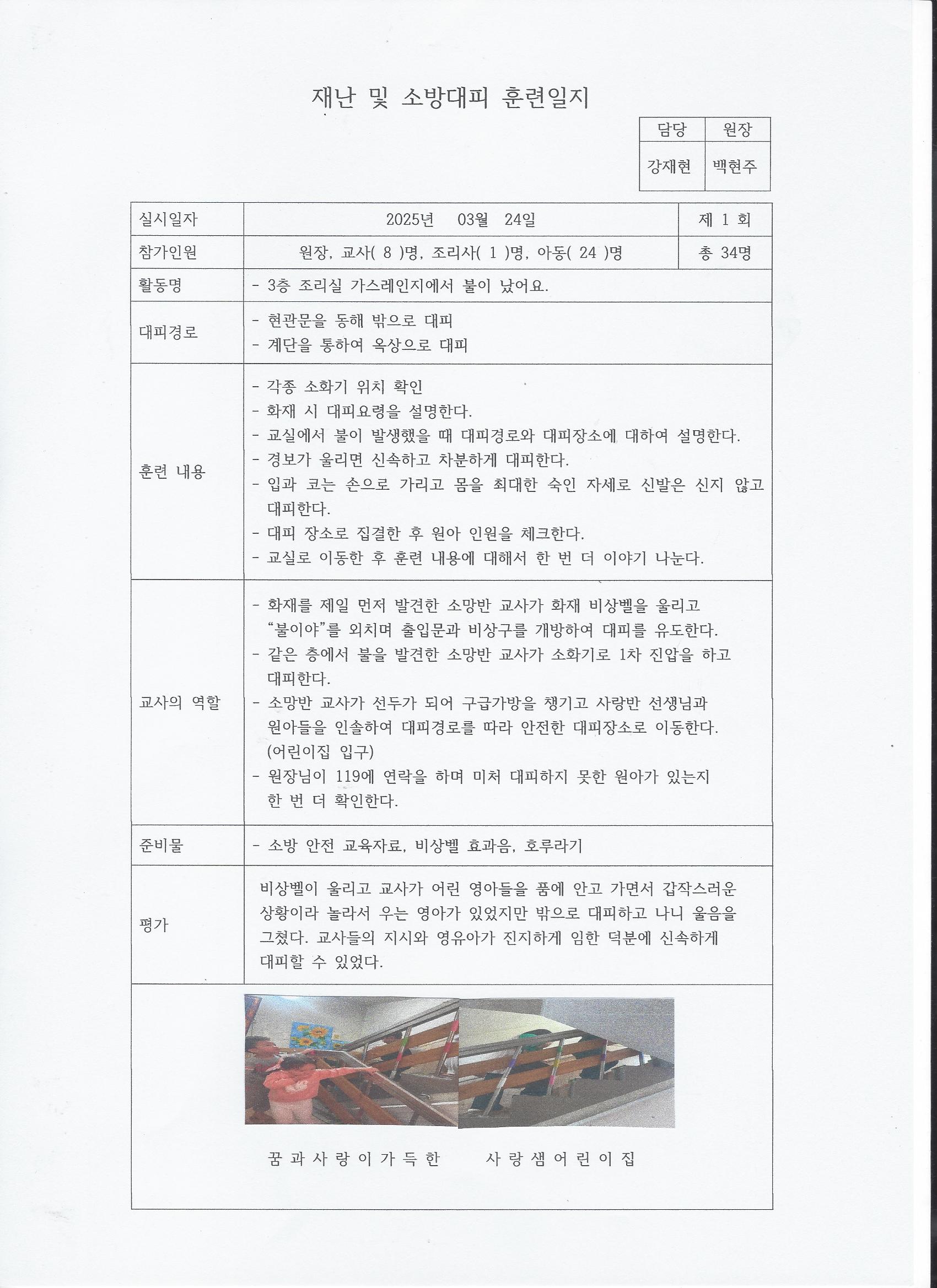| 소방대피 훈련 여부 | 실시 | 훈련일자 | 2025-03-24 |