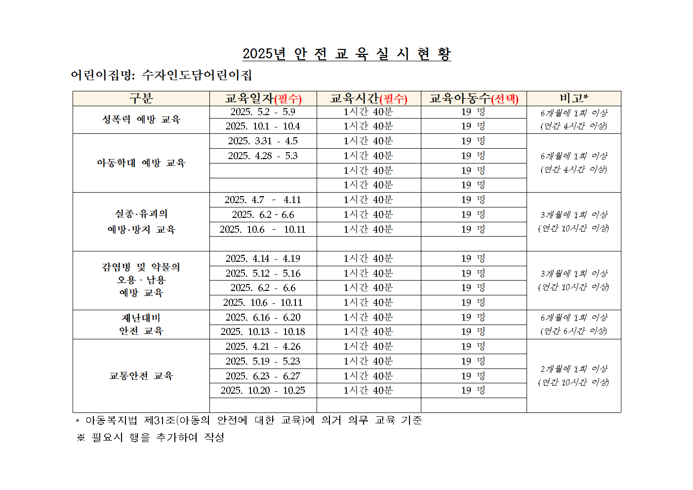 | 아동 안전교육 실시 현황 | 안전교육 현황001.bmp | ||