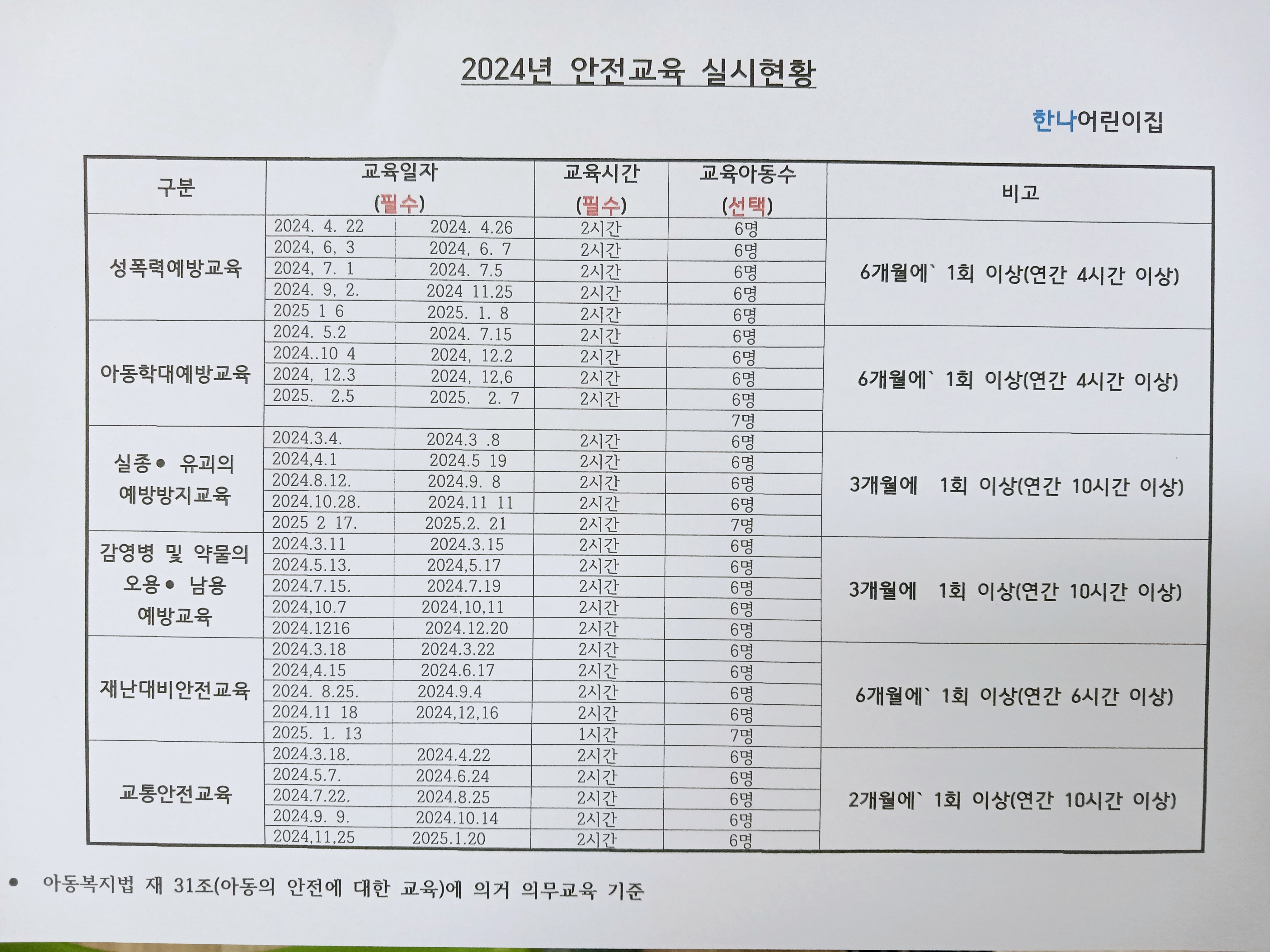 | 아동 안전교육 실시 현황 | 2024년 안전교육.jpg | ||