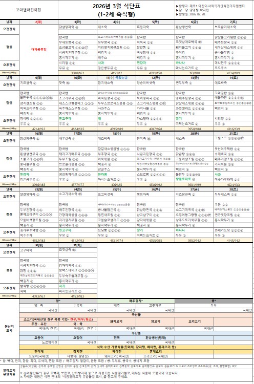 | 전체아동수 | 급식아동수 | 영양(교)사 | 취사인력 | ||||