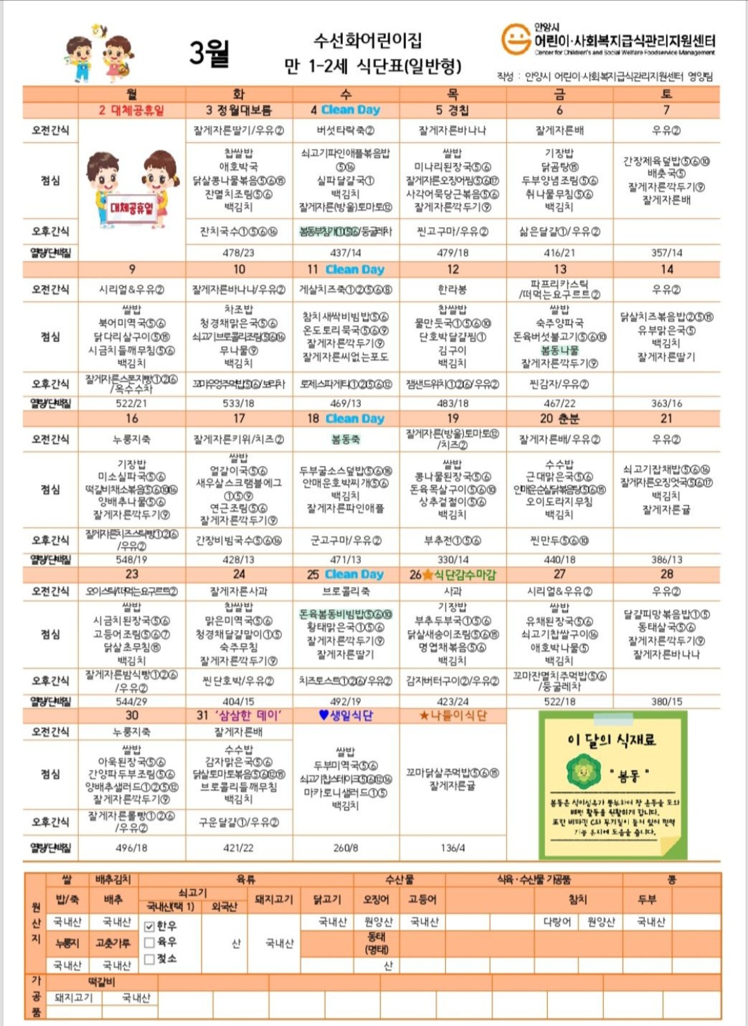 | 전체아동수 | 급식아동수 | 영양(교)사 | 취사인력 | ||||