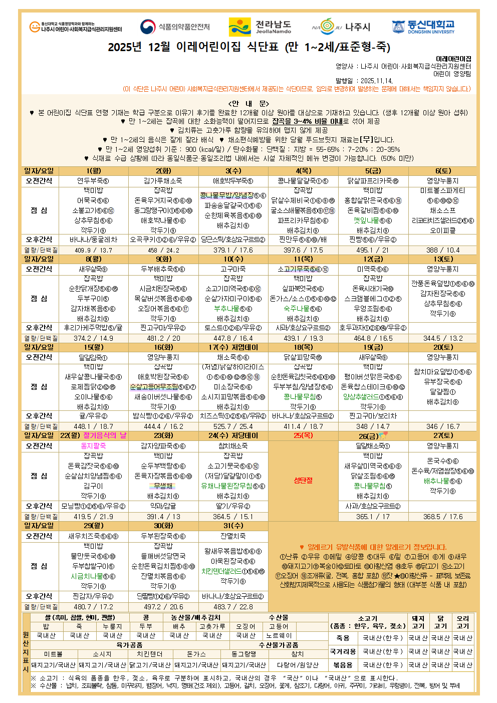 | 전체아동수 | 급식아동수 | 영양(교)사 | 취사인력 | ||||