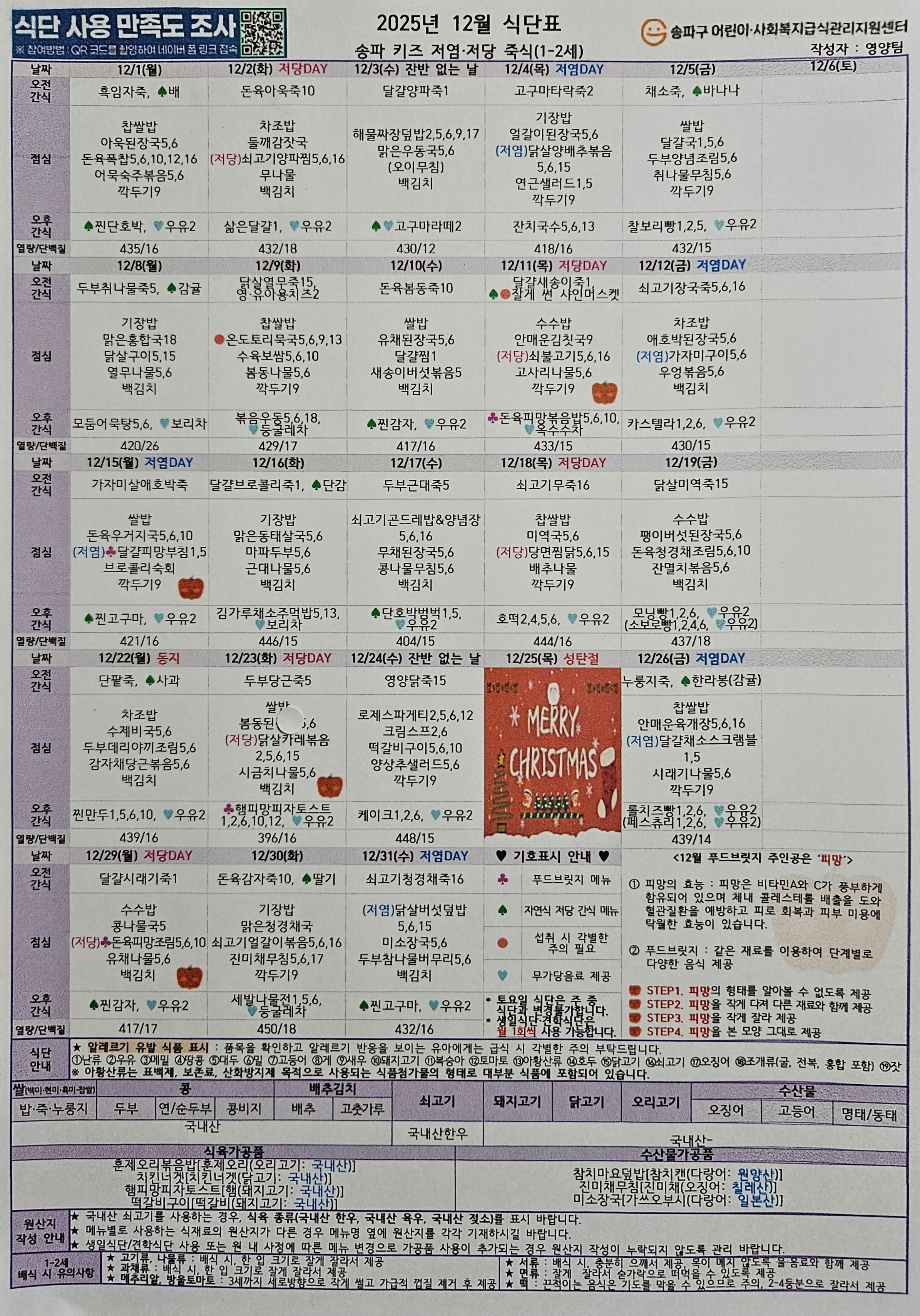 * 급식담당인력수의 취사부는 취사부와 조리사 인력을 합산할 수 있습니다.