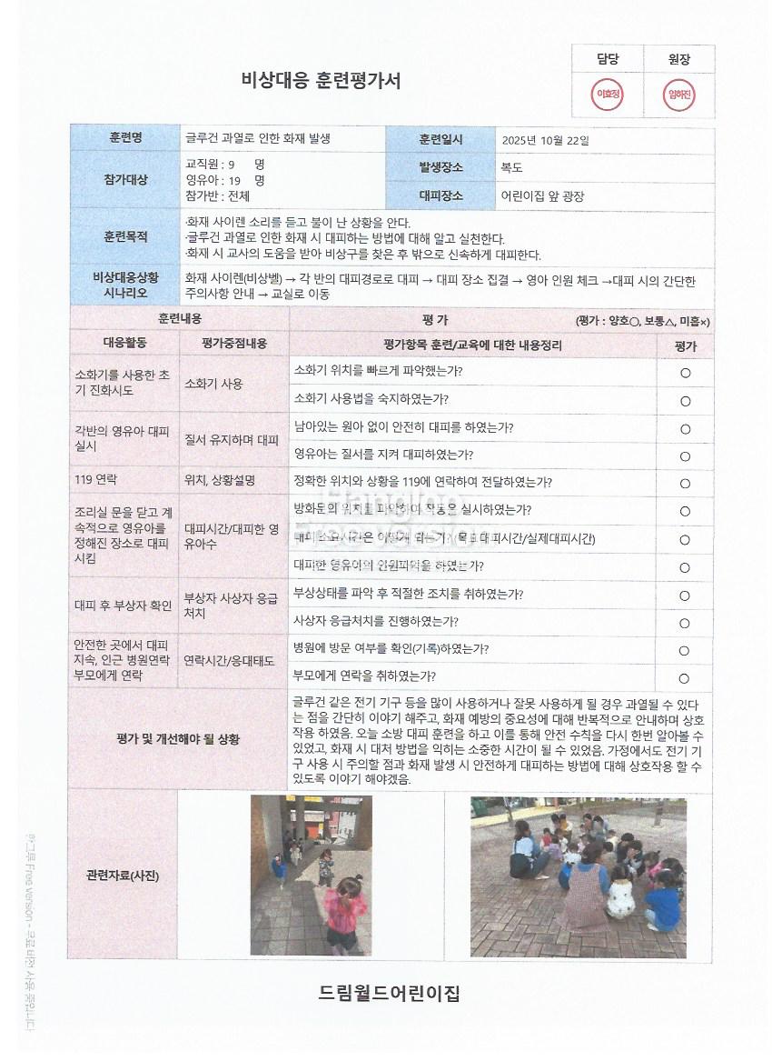 | 소방대피 훈련 여부 | 실시 | 훈련일자 | 2025-10-22 |