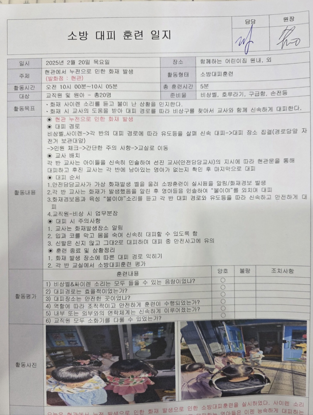 | 아동 안전교육 실시 현황 | 2502 소방대피훈련.jpg | ||