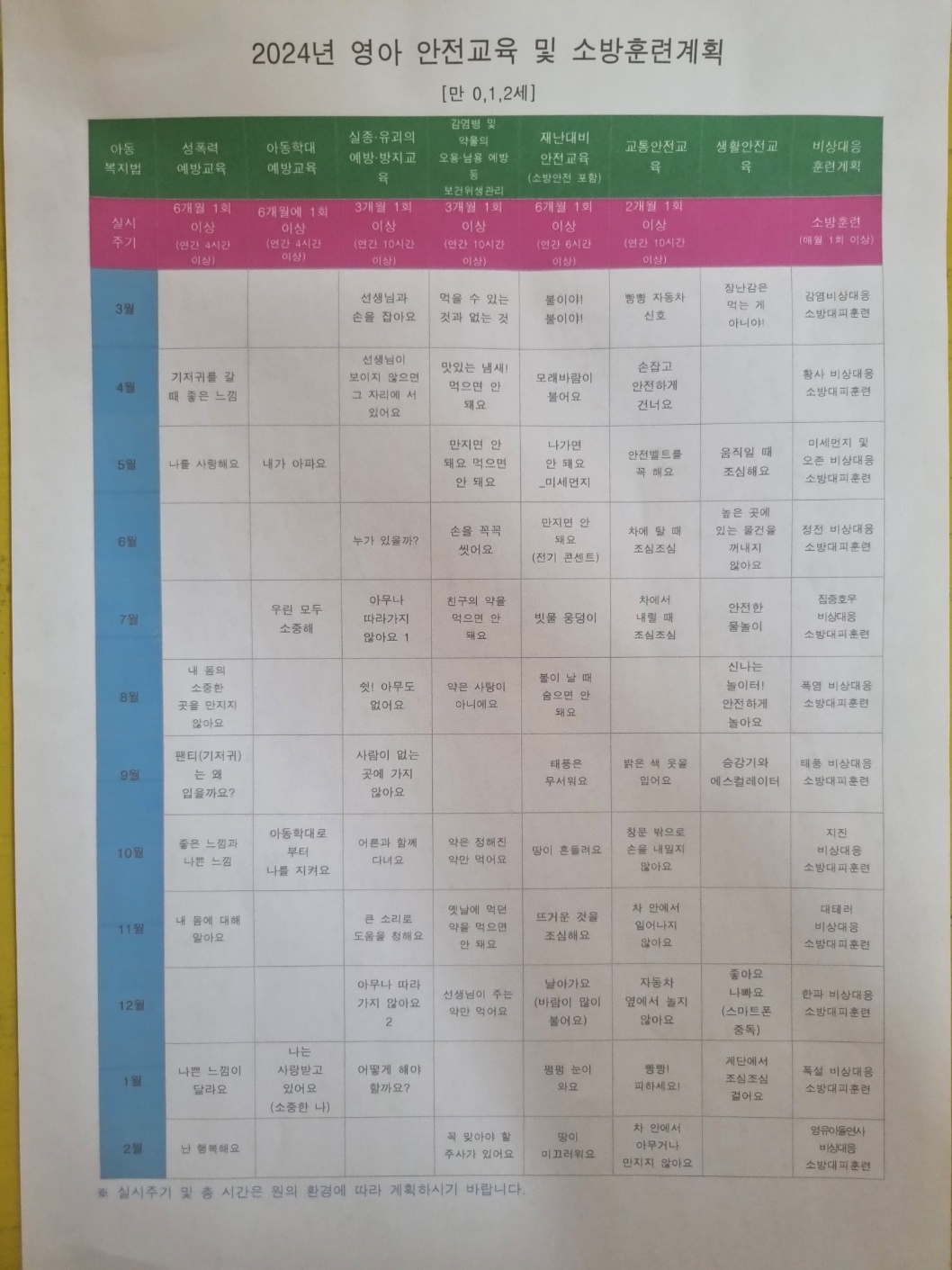 | 아동 안전교육 실시 현황 | 24년 영아 안전교육 및 소방훈련계획.jpg | ||