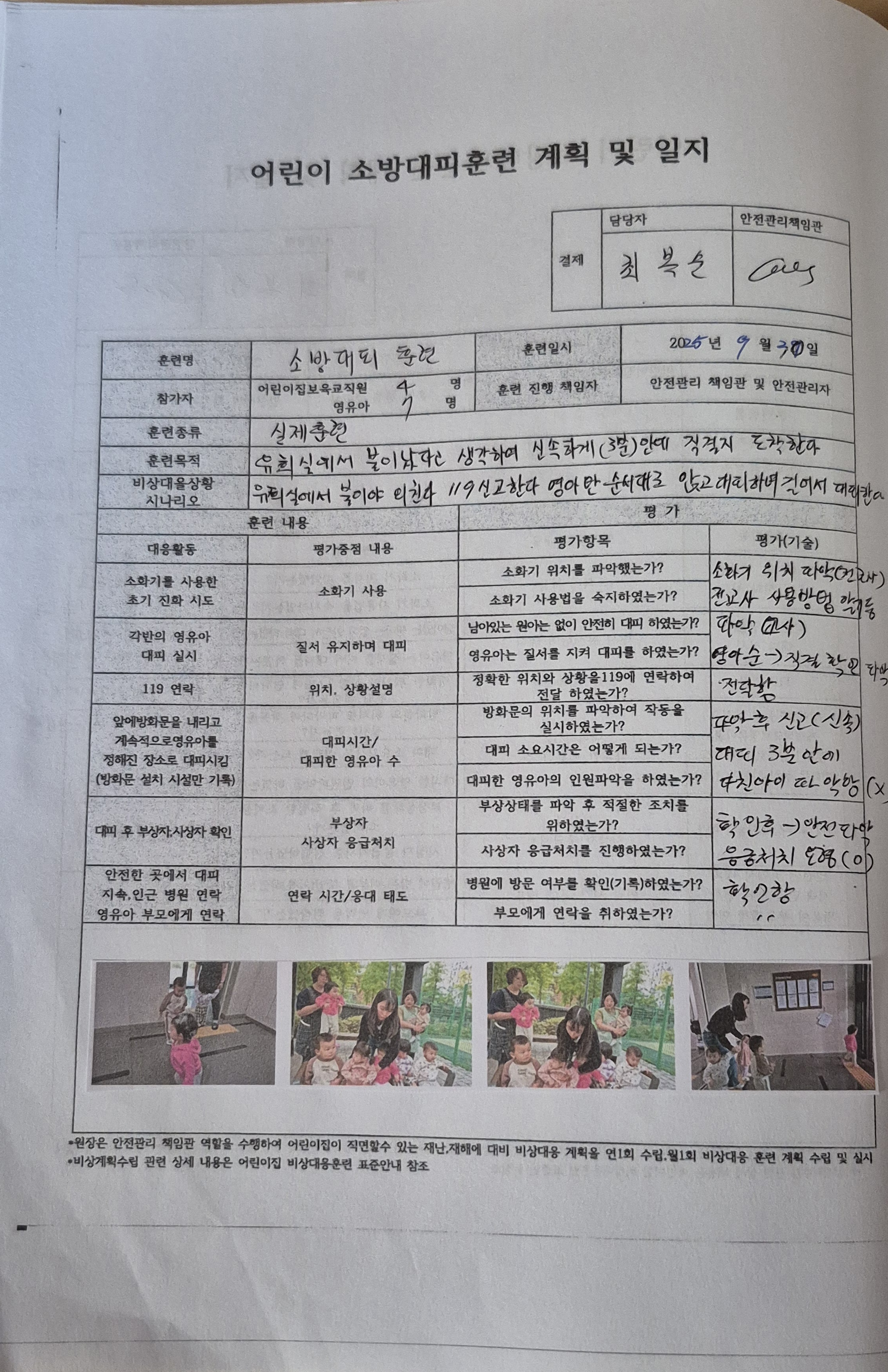 | 아동 안전교육 실시 현황 | 9월 소방훈련 실시.jpg | ||